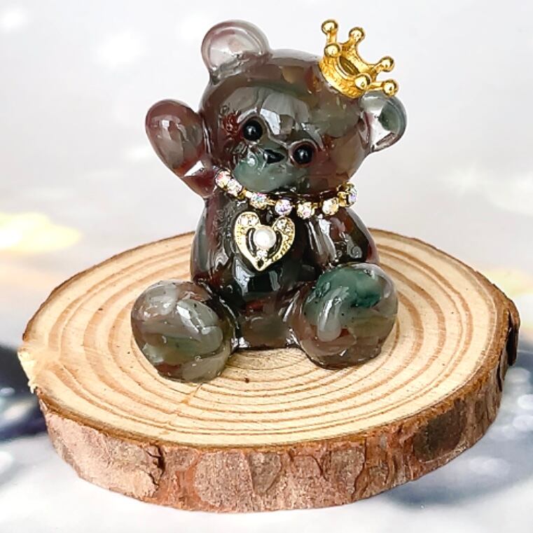 切株付 幸せを呼ぶオルゴナイト くまちゃん ラブラドライト