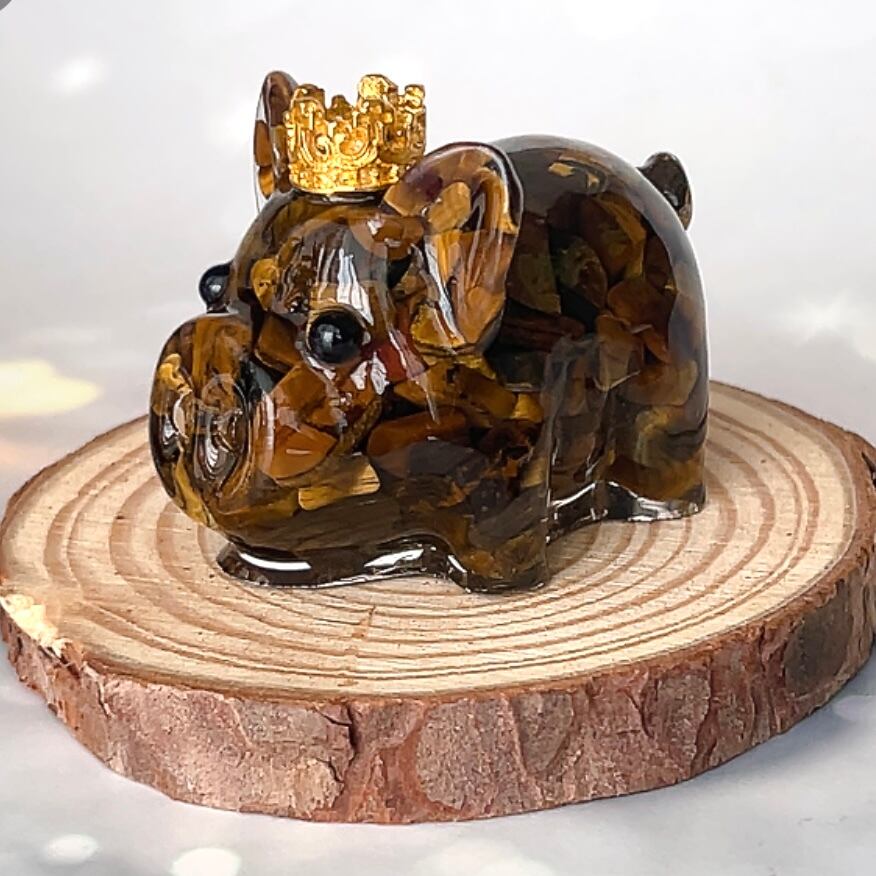 切株付 幸運引き寄せ♡オルゴナイト 豚さん 金運 タイガーアイ