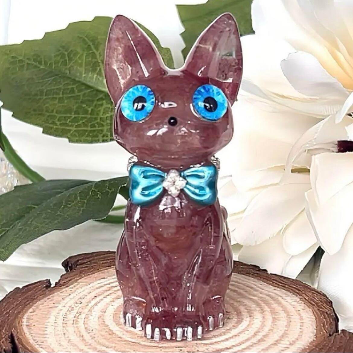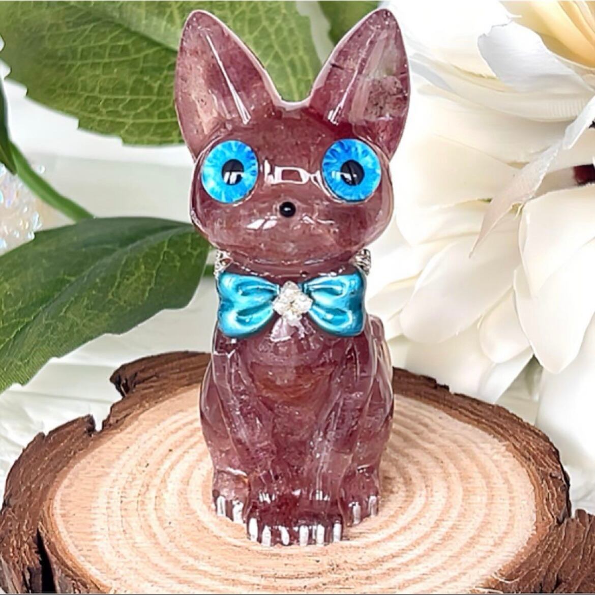 ストロベリークォーツ切株付 幸せを呼ぶオルゴナイト猫ちゃん♡
