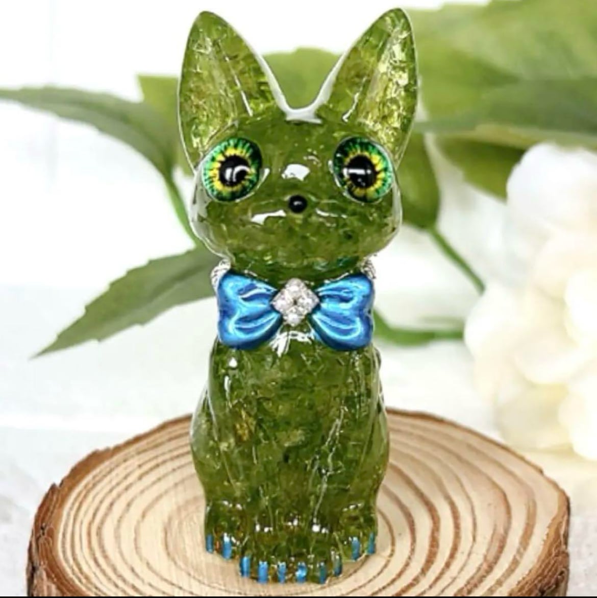 切株付 幸せを呼ぶオルゴナイト猫ちゃん♡ ペリドット