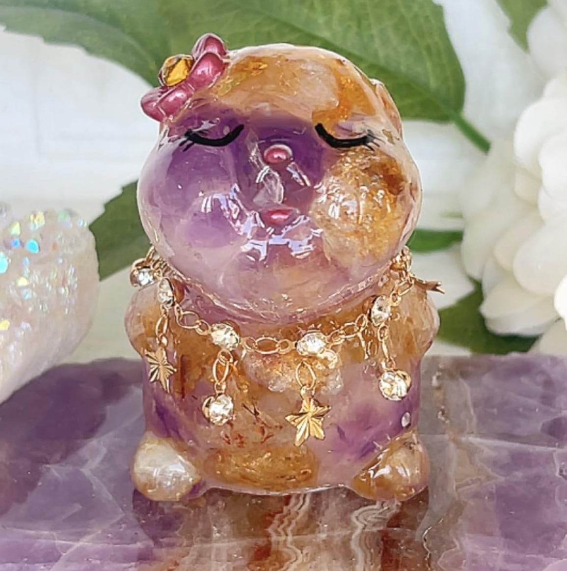 幸せを呼ぶオルゴナイト 垂れ耳うさぎ シリウスアメジスト ブラジル産シトリン