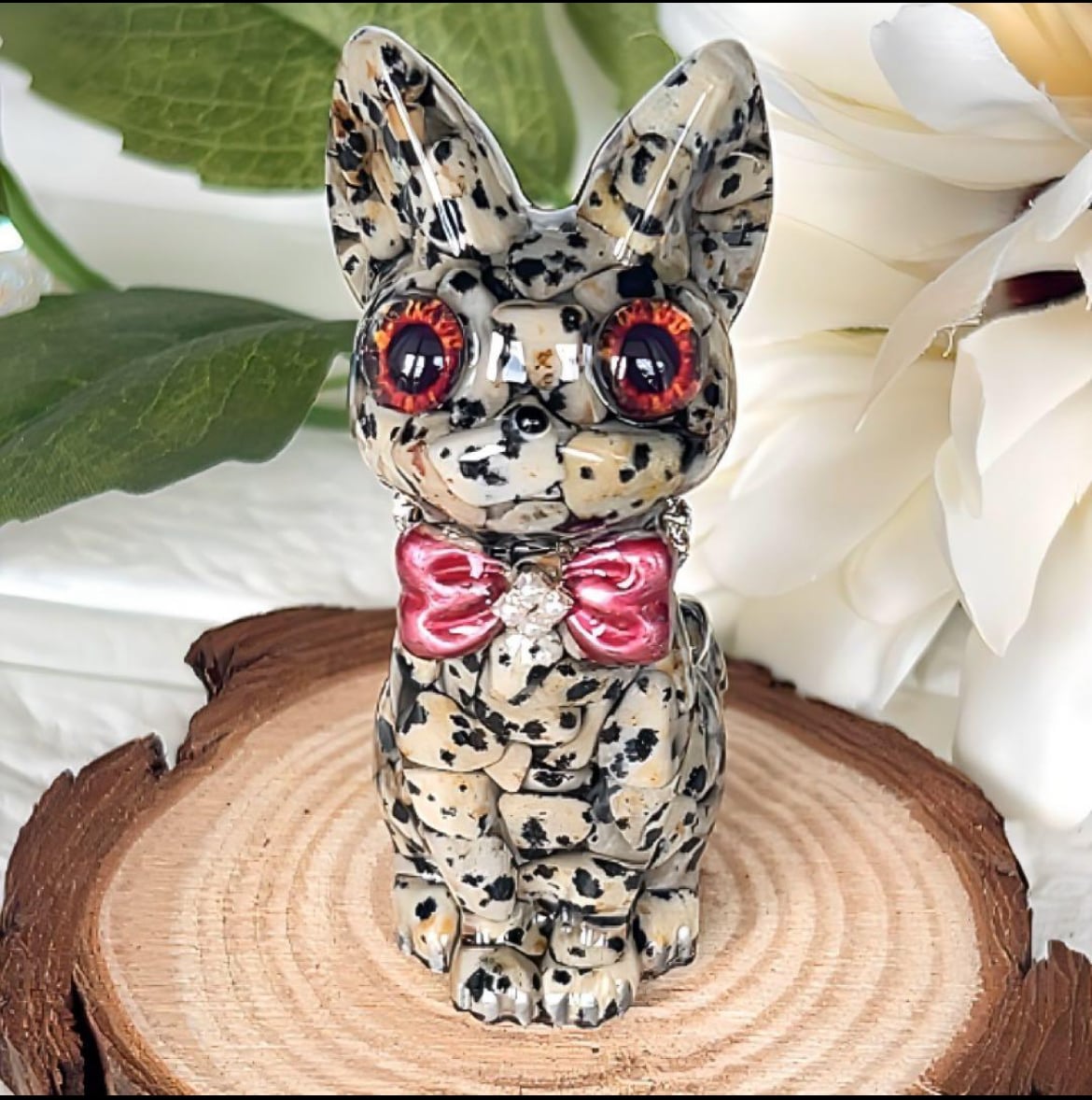 切株付 幸せを呼ぶオルゴナイト猫ちゃん♡ ダルメシアンジャスパー