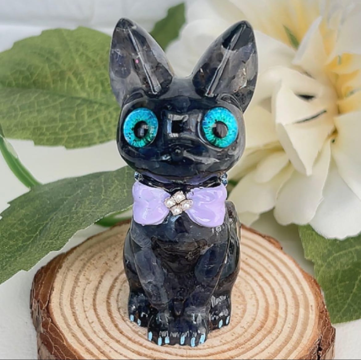 切株付 幸せを呼ぶオルゴナイト猫ちゃん♡ アイオライト
