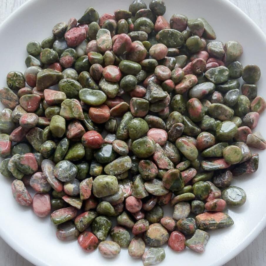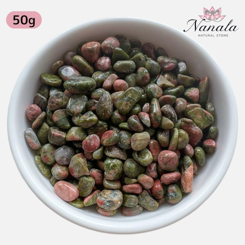 ナチュラル感たっぷり 優しい緑と桃色 ユナカイト さざれ石50g