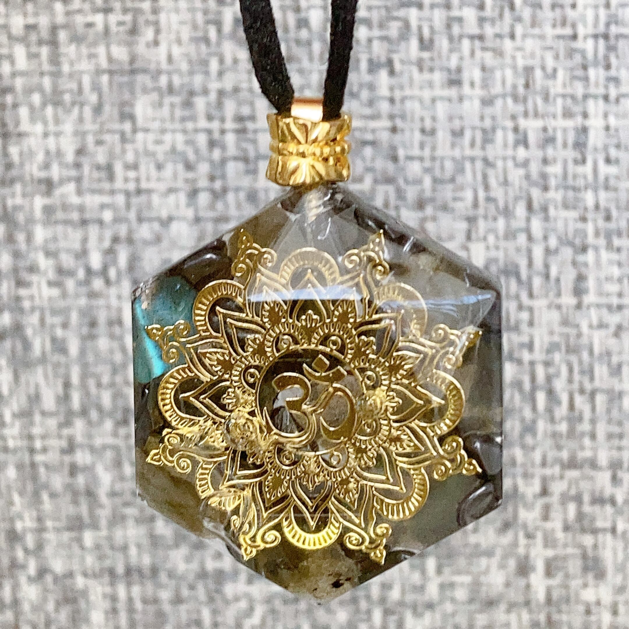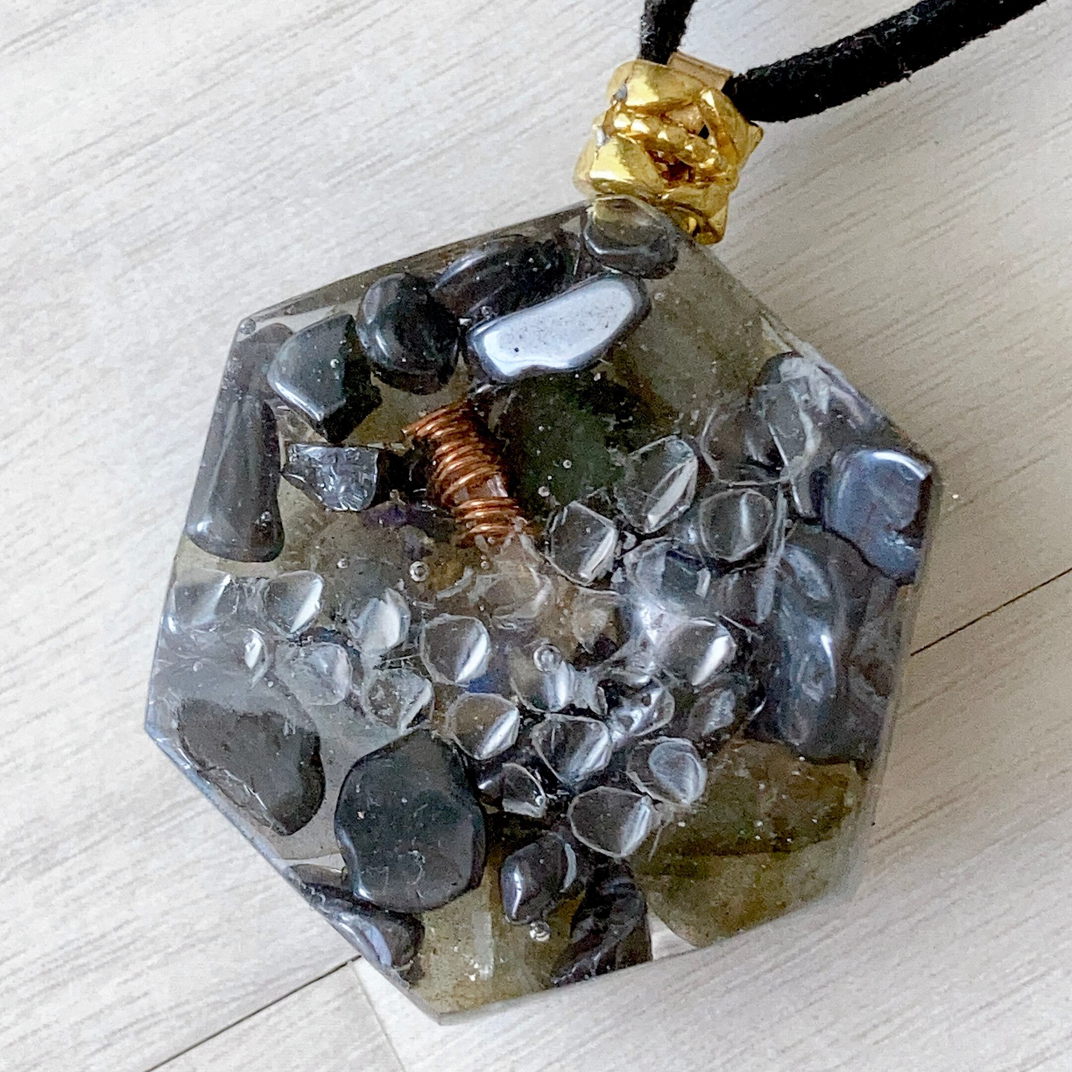白蛇抜殻入り幸運✨オルゴナイト ネックレス オーム ラブラドライト ヘマタイト