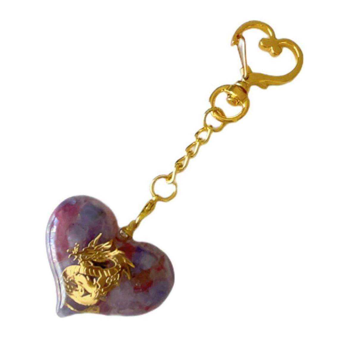 幸運引き寄せ♡オルゴナイト キーホルダー ハート 金龍 龍神様 ユニコーンストーン