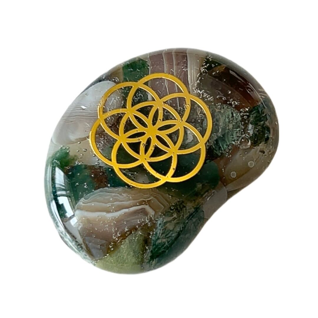御守りオルゴナイト✨そら豆みたいな 握り石 シードオブライフ 瑪瑙 魔除 子宝 金運